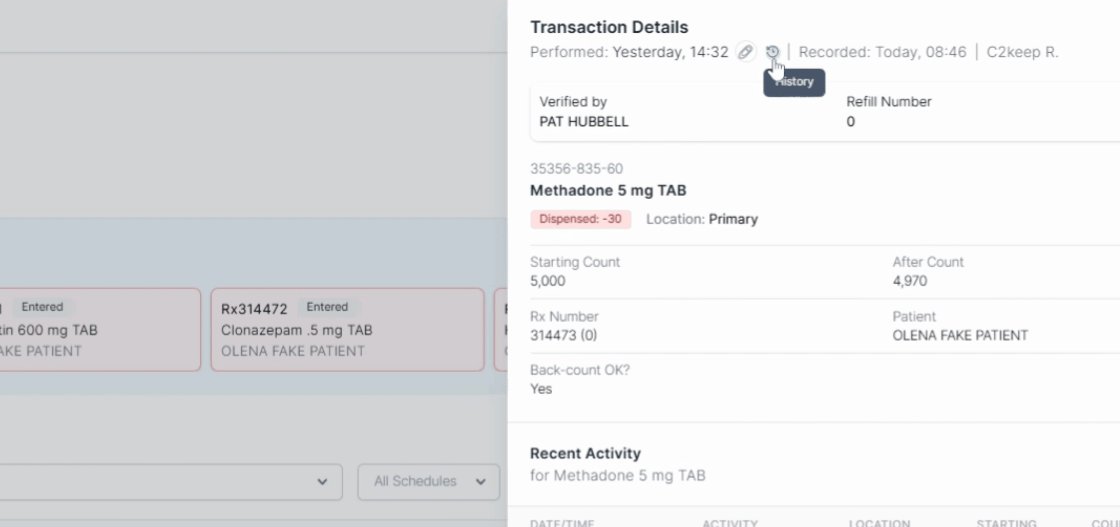 The updated transaction will reflect within the completed transaction trail, indicating that it has been dispensed.